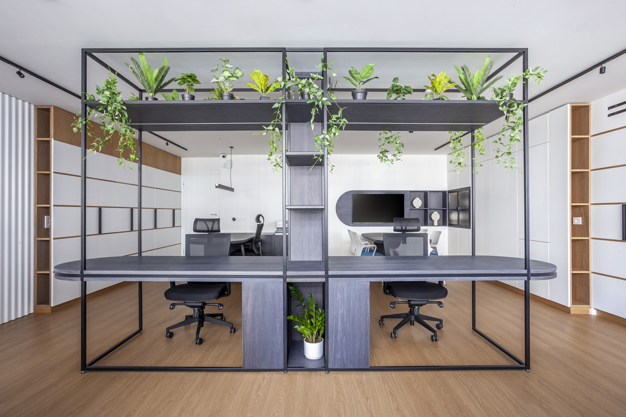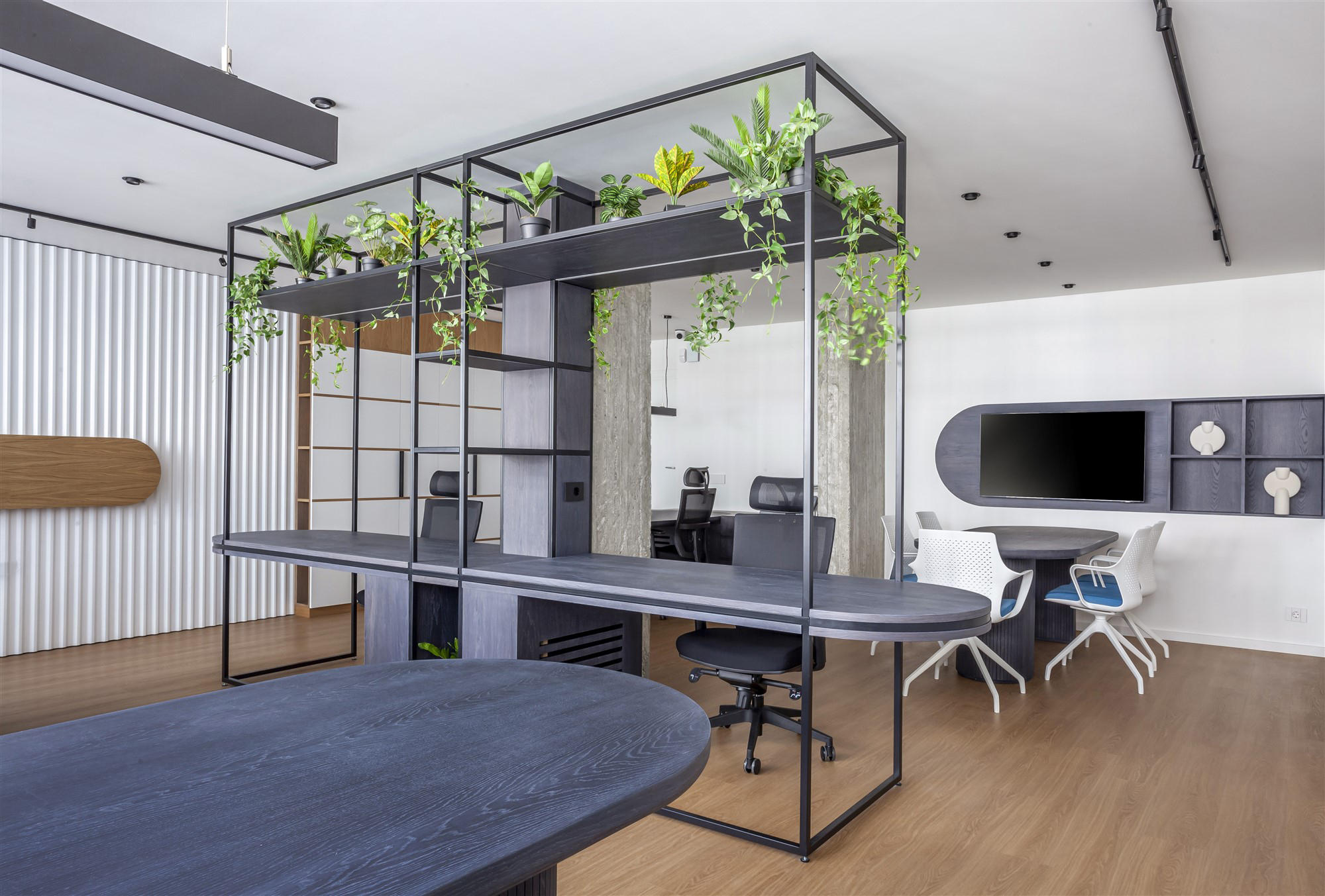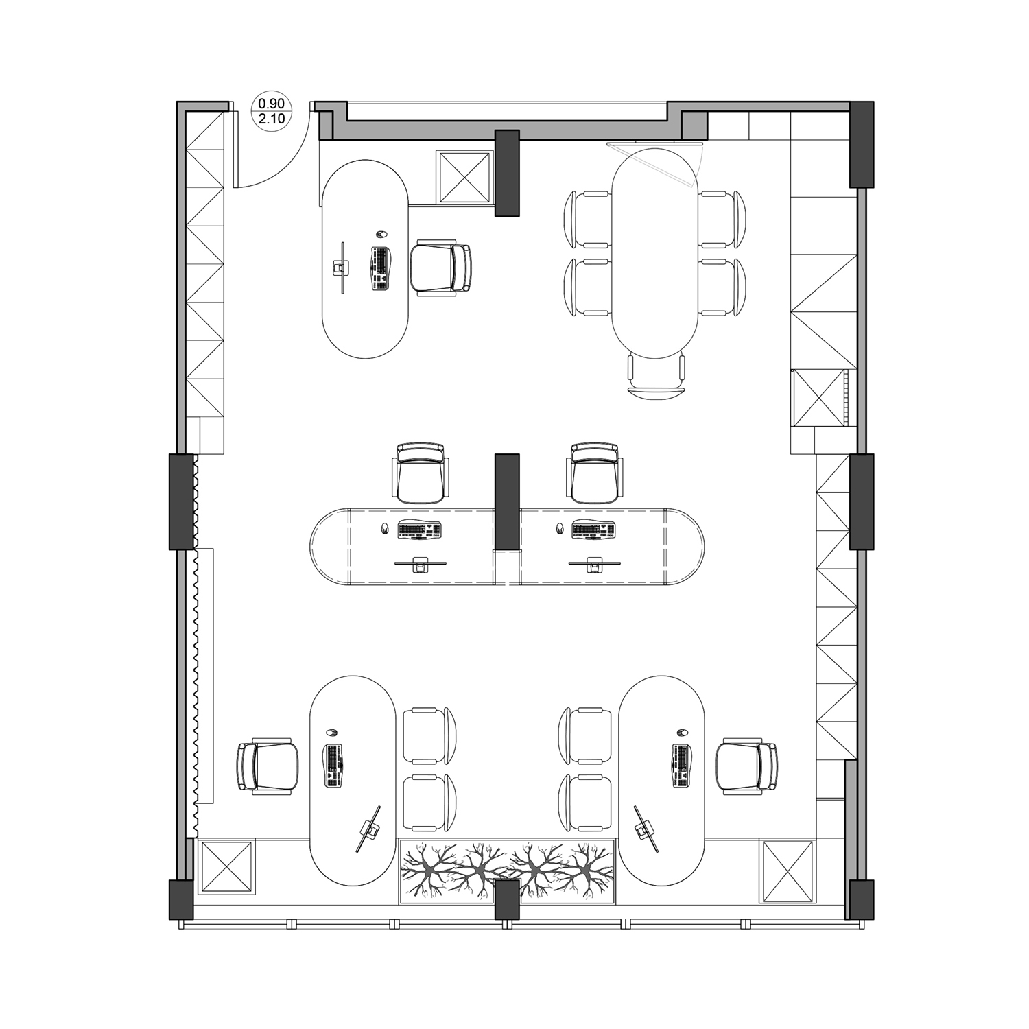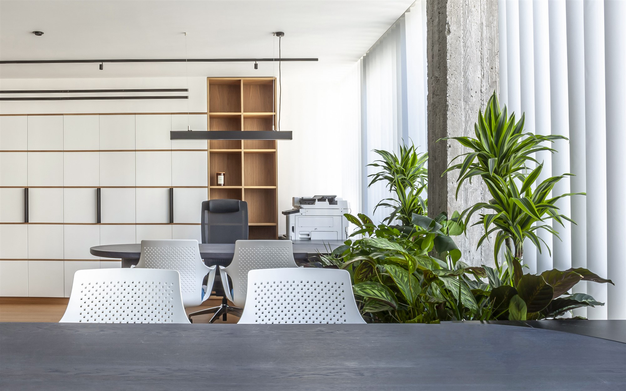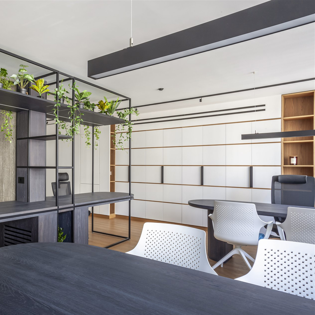 The result is an office where function and composition converge—a compact yet expansive environment that balances efficiency, light, and visual calm. Here, every surface and angle is designed to foster clarity, interaction, and a subtle tension between solidity and openness, embodying a contemporary approach to urban workspace design.