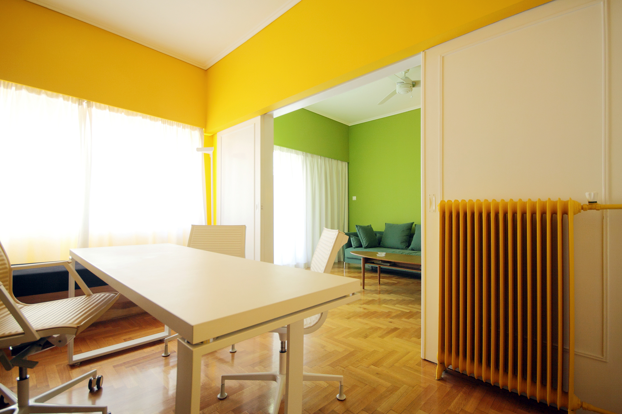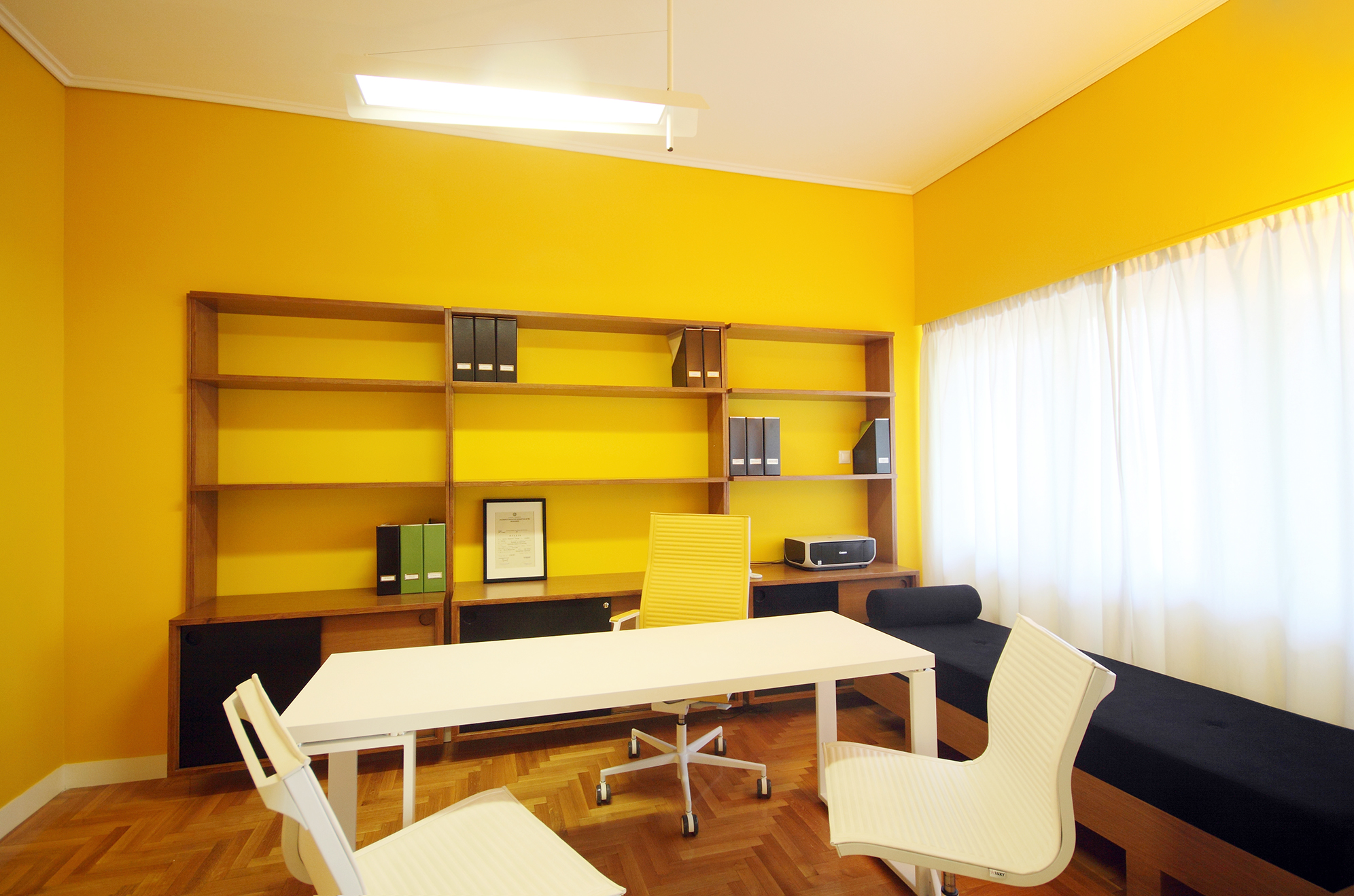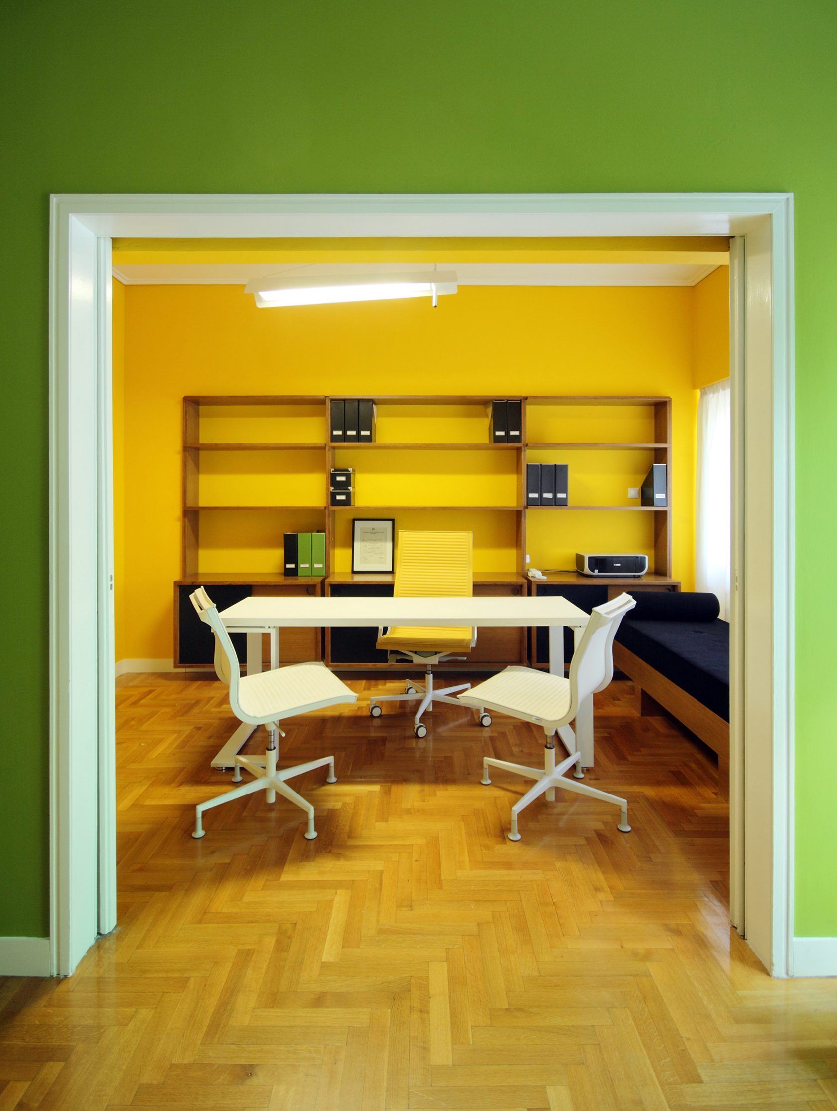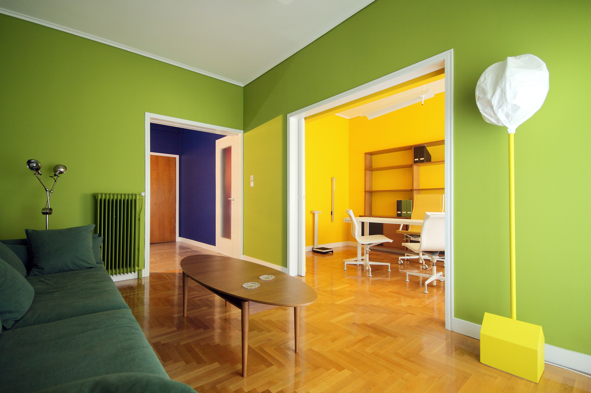 Situated on the first floor of a 1960s residential building in Koukaki, Athens, this 75 m² clinic transforms a modest interior into a bright and engaging environment. Drawing inspiration from the client’s focus on nutrition, the design celebrates nature and fresh produce through a vibrant color palette. Colors shift subtly across the space, creating a dynamic sense of rhythm and balance. Furniture and finishes are carefully calibrated to either blend with or contrast against the walls, resulting in a minimal yet playful interior that feels intuitive, lively, and welcoming.