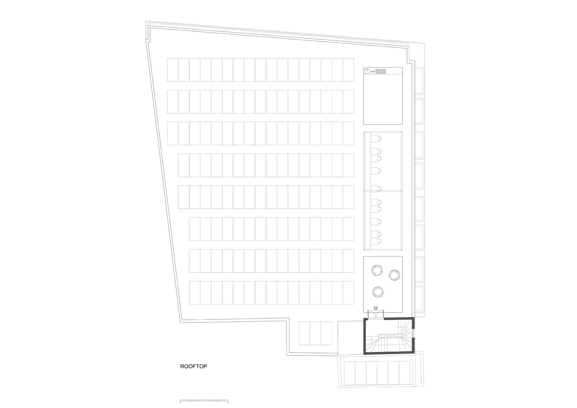 Shared rooftop and ground-level spaces extend domestic life beyond the private interior, framing sustainability and collective use as integral architectural components rather than technical additions. Through restraint, layering, and reuse, the project proposes an alternative model for urban housing—one that extends the life of the existing city while enabling new spatial and social possibilities.